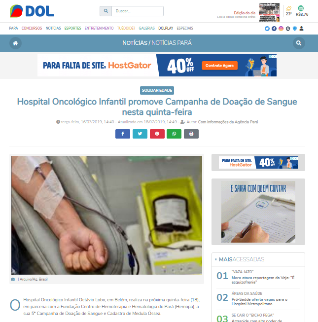 Diário Online – Hospital Oncológico Infantil promove Campanha de Doação de Sangue nesta quinta-feira