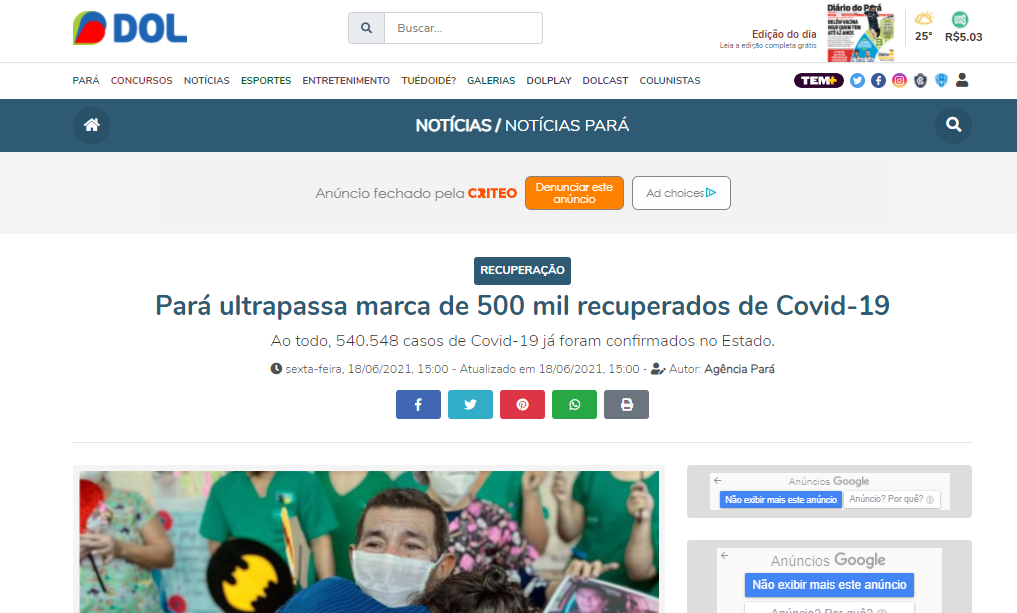 Diário Online – Pará ultrapassa marca de 500 mil recuperados da Covid-19