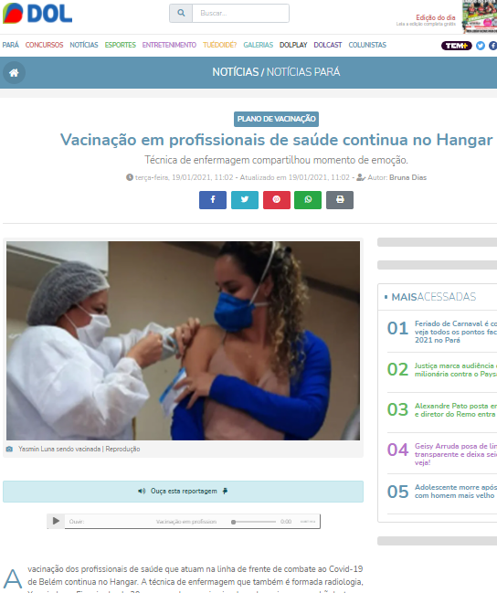 Diário Online – Vacinação da covid-19 em profissionais de saúde continua no Hospital de Campanha do Hangar