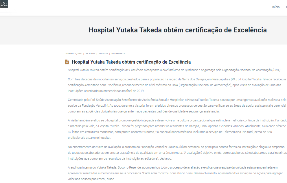Direito Médico – Hospital Yutaka Takeda conquista nível máximo de certificação