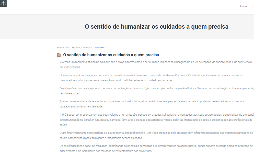 Direito Médico Saúde – Coordenadora de Filantropia da Pró-Saúde reforça a importância da humanização no cuidado ao próximo durante a pandemia
