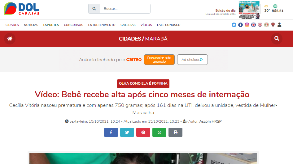 Dol Carajás – Vídeo: Bebê recebe alta após cinco meses de internação