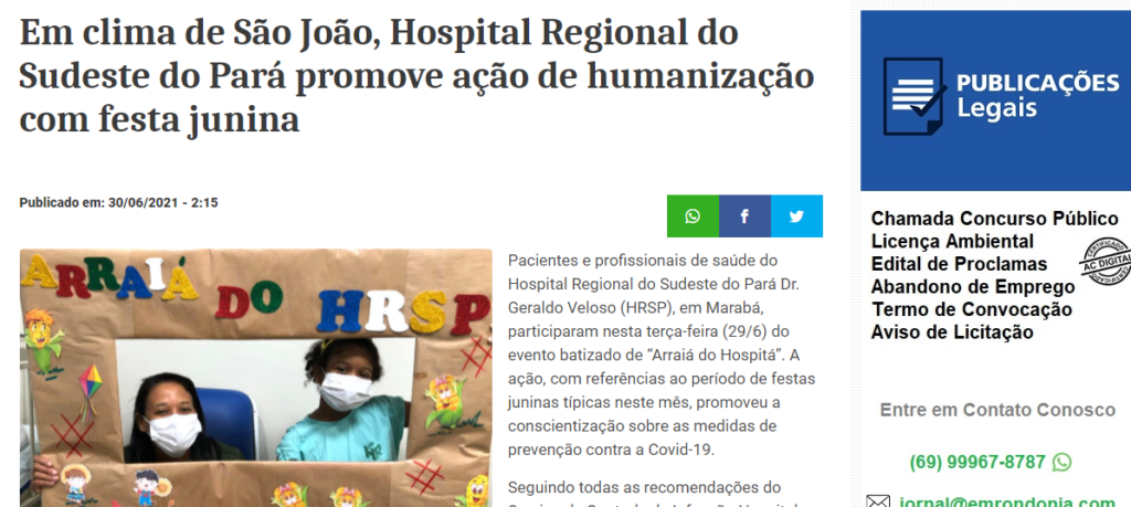 EM Rondônia – Em clima de São João, Hospital Regional do Sudeste do Pará promove ação de humanização com festa junina