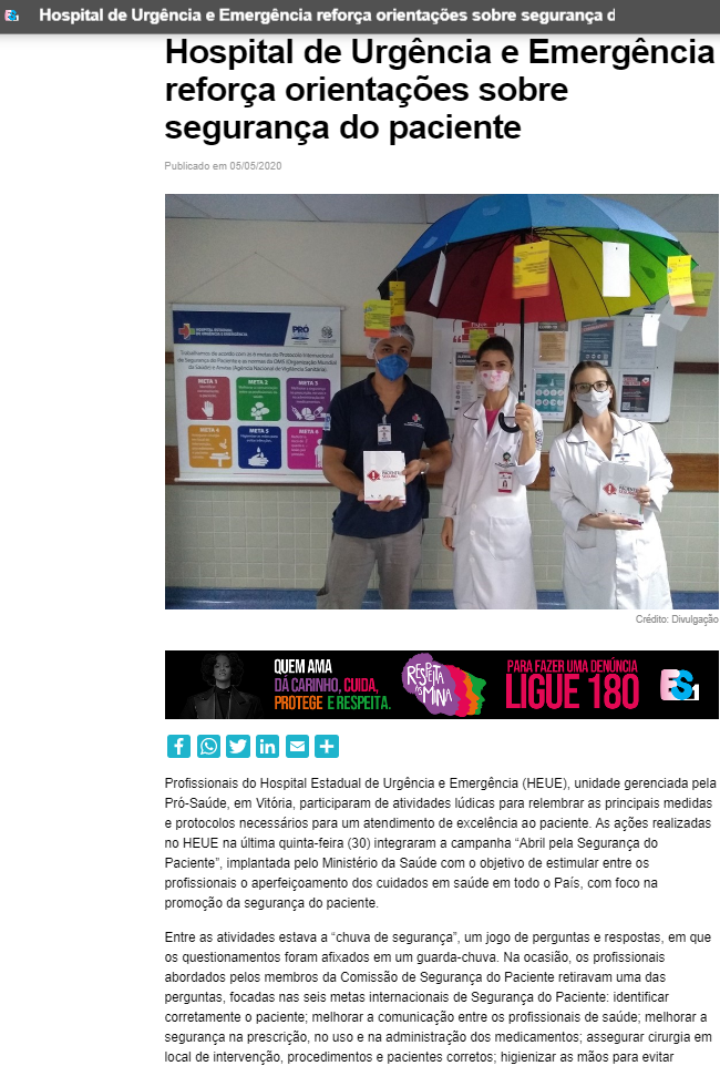 ES 1 – Hospital Estadual de Urgência e Emergência reforça orientações sobre segurança do paciente