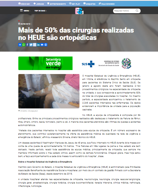ES1 – Mais de 50% das cirurgias realizadas no Hospital Estadual de Urgência e Emergência são ortopédicas