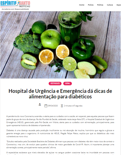 Espirito Santo Notícias – Hospital Estadual de Urgência e Emergência dá dicas de alimentação para diabéticos