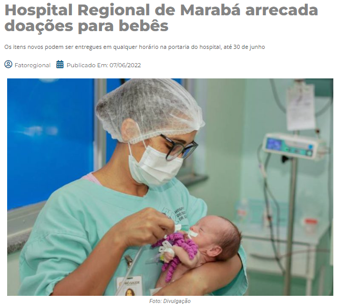 Fato Regional – Hospital Regional de Marabá arrecada doações para bebês