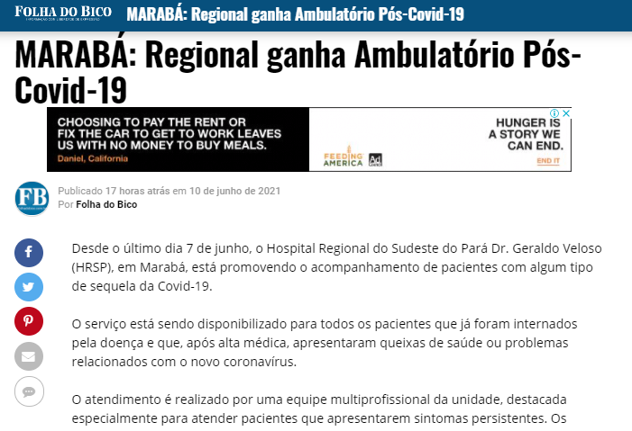 Folha de Bico – Marabá, no Sudeste do Pará, ganha Ambulatório Pós-Covid-19