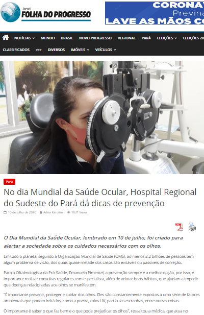 Folha de Progresso – No dia Mundial da Saúde Ocular, Hospital Regional do Sudeste do Pará dá dicas de prevenção