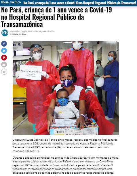 Folha do Bico – Criança de 1 ano e cinco meses vence a covid-19 no Hospital Regional da Transamazônica