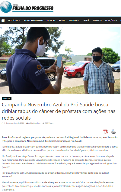 Folha do Progresso -Campanha Novembro Azul da Pró-Saúde busca driblar tabus do câncer de próstata com ações nas redes sociais