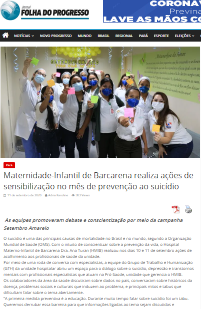 Folha do Progresso – Hospital Materno-Infantil realiza ações de sensibilização no mês de prevenção ao suicídio