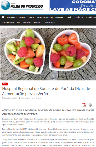 Folha do Progresso – Hospital Regional do Sudeste do Pará dá dicas de alimentação saudável no verão amazônico