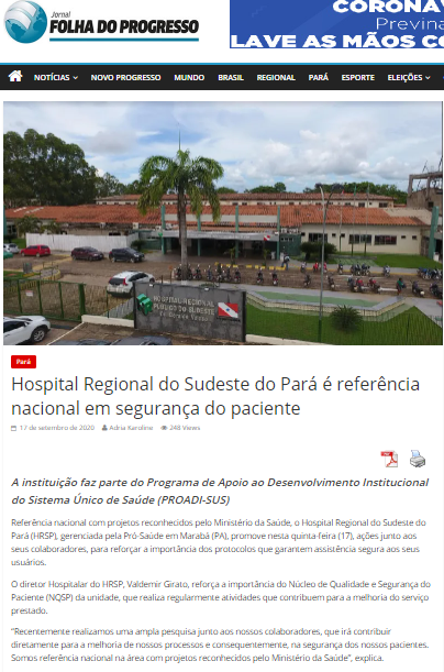 Folha do Progresso – Hospital Regional do Sudeste do Pará é referência nacional em segurança do paciente