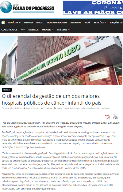 Folha do Progresso – Os diferenciais da gestão do Hospital Oncológico Infantil, um dos maiores públicos de câncer infanto-juvenil no país