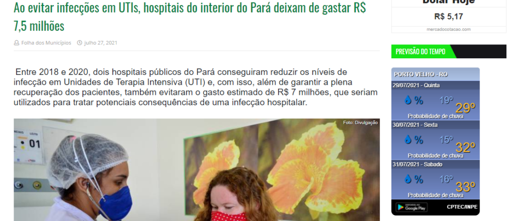 Folha dos Municípios – Ao evitar infecções em UTIs, hospitais do interior do Pará deixam de gastar R$ 7,5 milhões