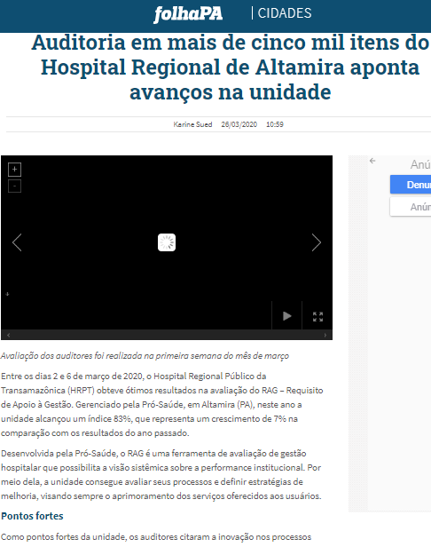 Folha PA – Auditoria feita pela Pró-Saúde mostra avanço nos serviços do Hospital Regional da Transamazônica