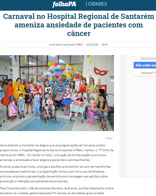 Folha PA – Carnaval no Hospital Regional do Baixo Amazonas alegra crianças com câncer
