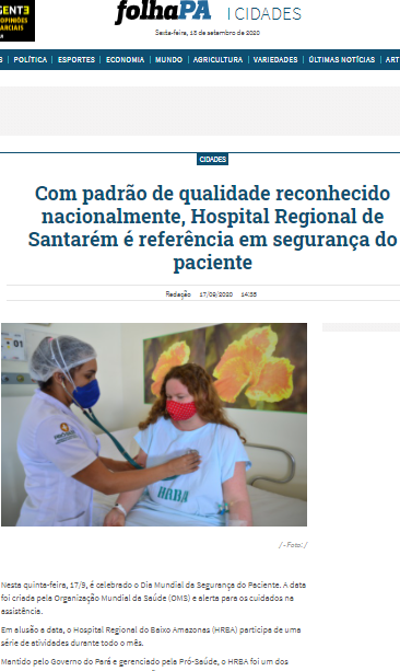 Folha PA – Com padrão de qualidade reconhecido nacionalmente, Hospital Regional do Baixo Amazonas é referência em segurança do paciente