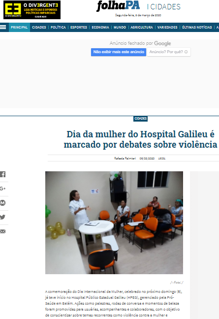 Folha PA – Dia da mulher no Hospital Galileu é marcado por palestras sobre violência