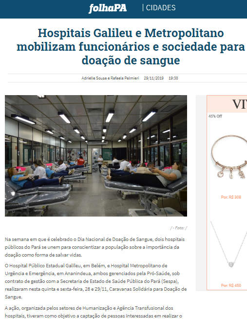 Folha PA – Hospitais Galileu e Metropolitano mobilizam funcionários e sociedade para doação de sangue