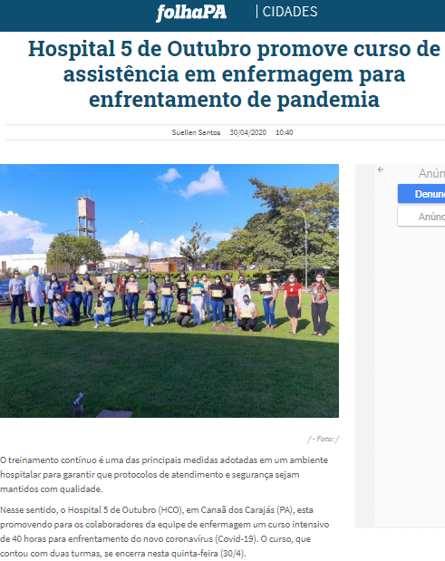 Folha PA – Hospital 5 de Outubro promove curso de assistência em enfermagem para enfrentamento de pandemia