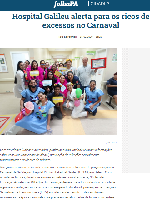 Folha PA – Hospital Galileu alerta para os riscos de excessos no Carnaval
