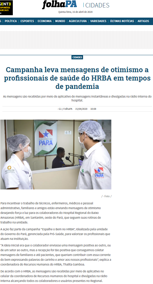 Folha PA Hospital Regional do Baixo Amazonas promove campanha para levar mensagens de incentivo a profissionais de saúde