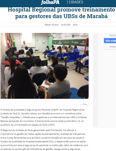 Folha PA – Hospital Regional do Sudeste do Pará promove treinamento para gestores das UBSs de Marabá
