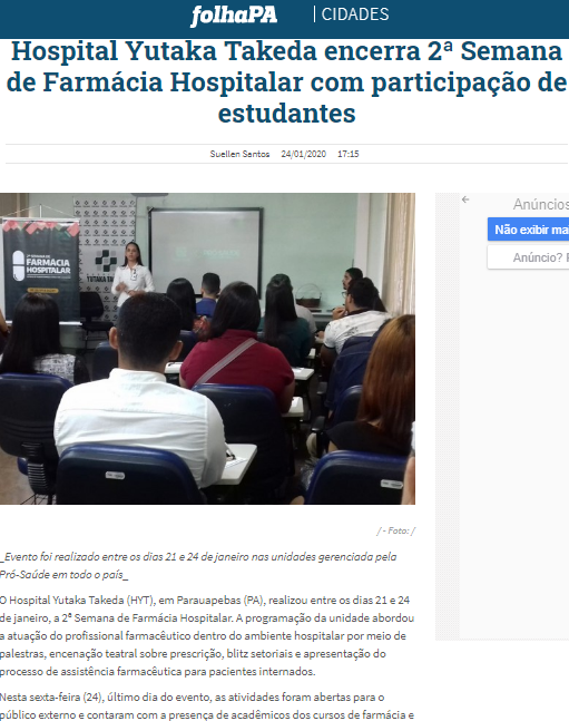 Folha PA – Hospital Yutaka Takeda encerra 2ª Semana de Farmácia Hospitalar com participação de estudantes