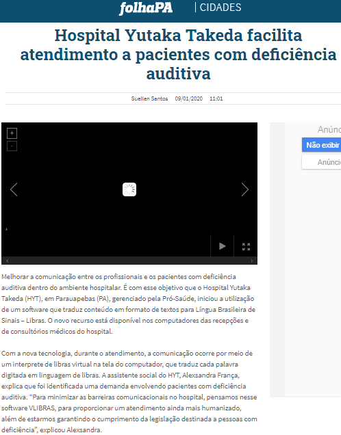 Folha PA – Hospital Yutaka Takeda facilita atendimento a pacientes com deficiência auditiva