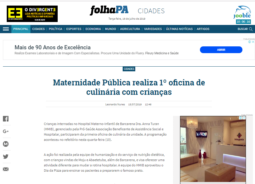 Folha PA – Maternidade Pública realiza 1º oficina de culinária com crianças