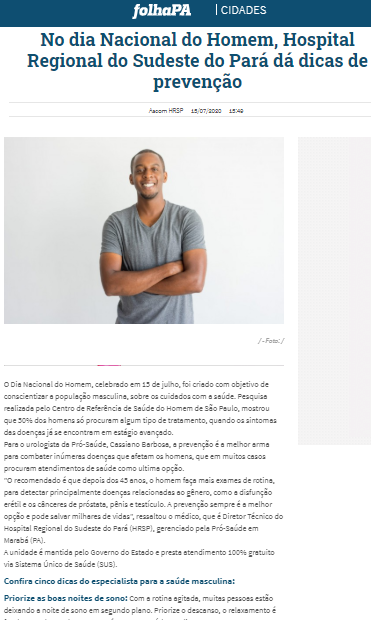 Folha PA – No Dia Nacional do Homem, Hospital Regional do Sudeste do Pará dá dicas de prevenção