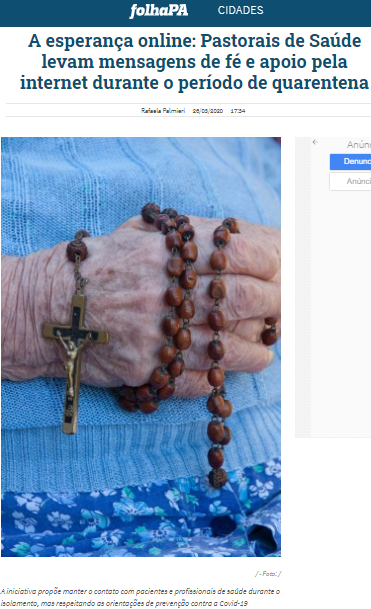 Folha PA – Pastorais da Pró-Saúde levam mensagens de fé e apoio pela internet para hospitais gerenciados