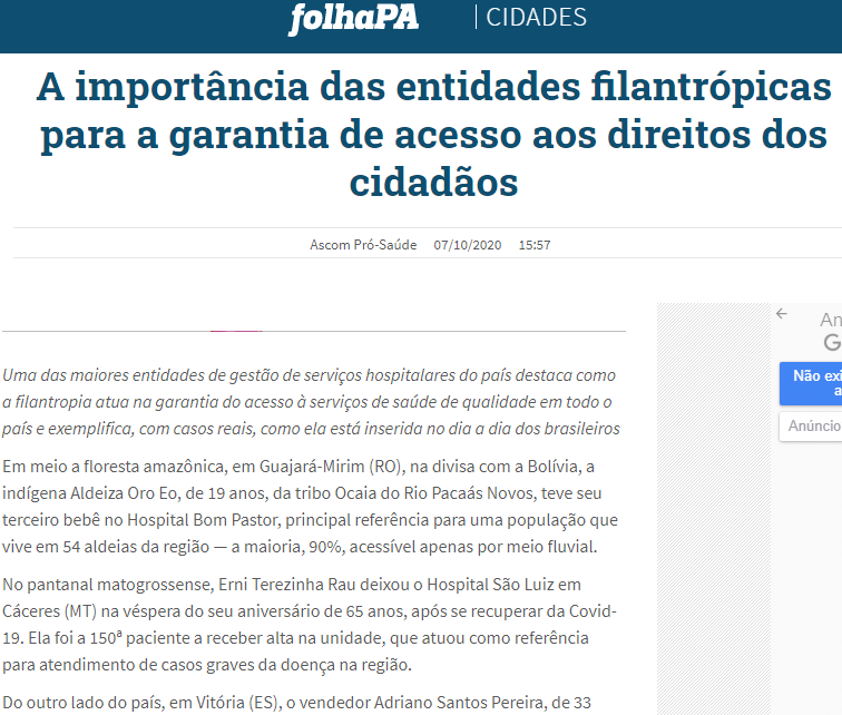 Folha PA – Pró-Saúde destaca a importância das entidades filantrópicas no país