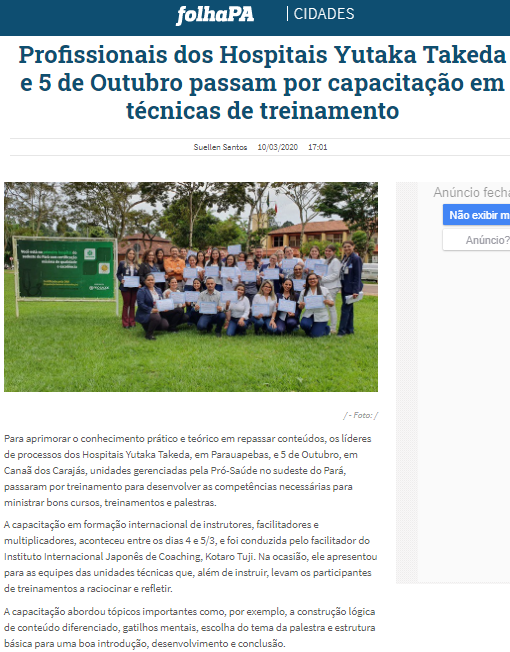 Folha PA – Profissionais dos Hospitais Yutaka Takeda e 5 de Outubro passam por capacitação em técnicas de treinamento