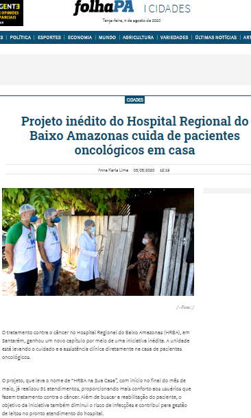 Folha PA – Projeto inédito do Hospital Regional do Baixo Amazonas cuida de pacientes oncológicos em casa