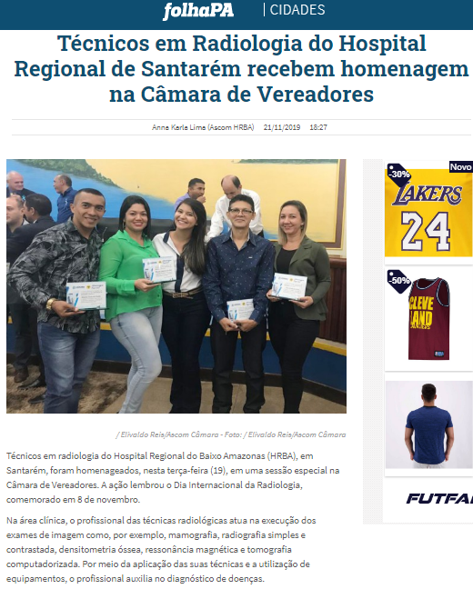 Folha PA – Técnicos em Radiologia do Hospital Regional do Baixo Amazonas recebem homenagem na Câmara de Vereadores de Santarém
