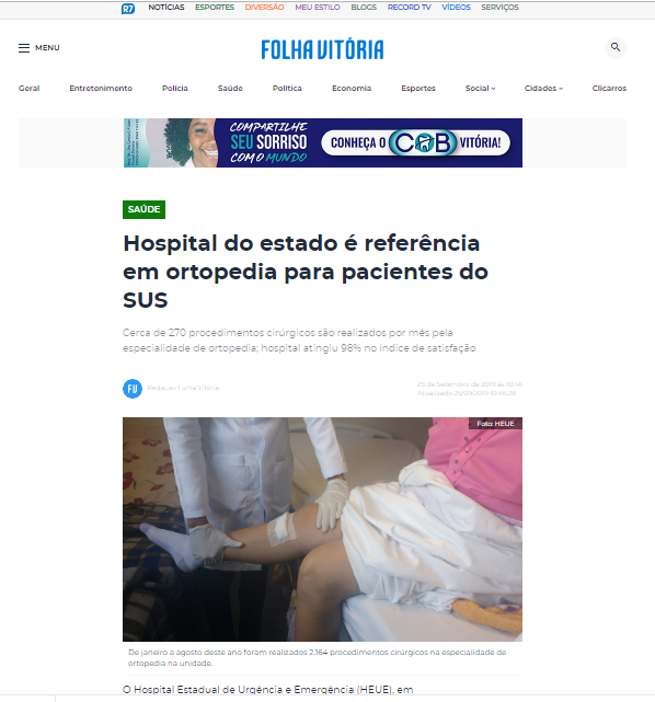 Folha Vitória – Hospital Estadual de Urgência e Emergência é referência em ortopedia