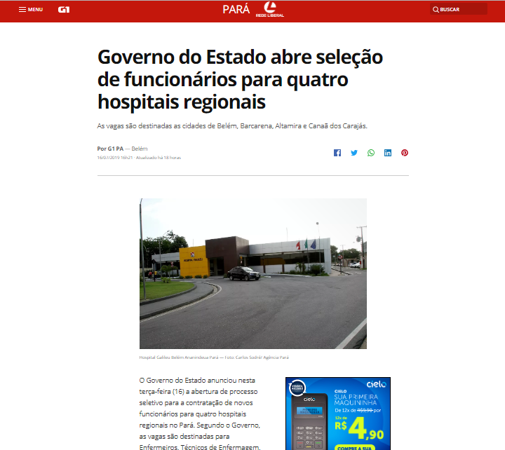 G1 – Governo do Estado abre seleção de funcionários para quatro hospitais regionais