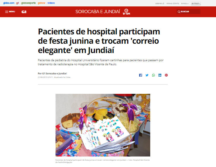 G1 – Pacientes de hospital participam de festa junina e trocam ‘correio elegante’ em Jundiaí
