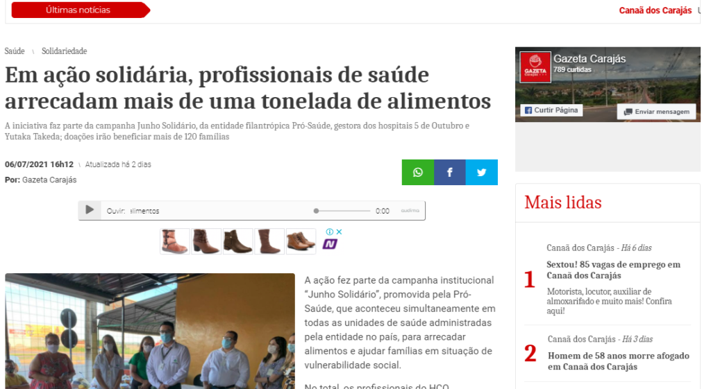 Gazeta Carajás – Em ação solidária, profissionais de saúde da Região de Carajás arrecadaram mais de uma tonelada de alimentos