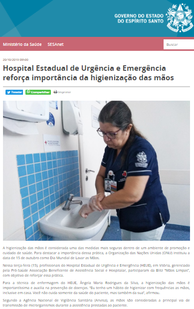 Governo do ES – Hospital Estadual de Urgência e Emergência reforça a importância da higienização das mãos