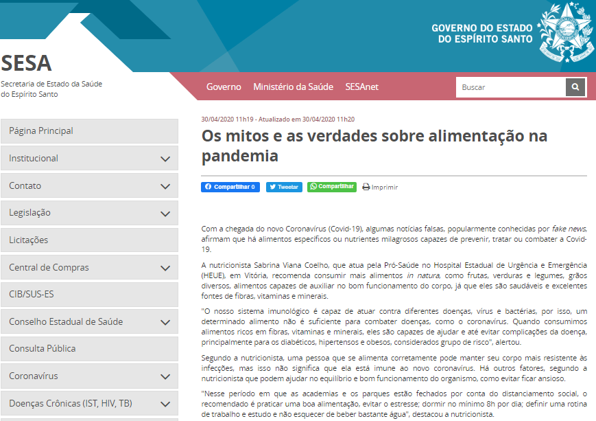 Governo do Espírito Santo – Hospital Estadual de Urgência e Emergência aponta mitos na prevenção ao coronavírus