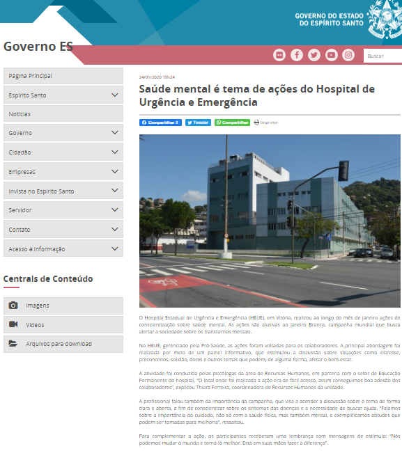 Governo do Estado do Espírito Santo – Saúde mental é tema de ações do Hospital Estadual de Urgência e Emergência