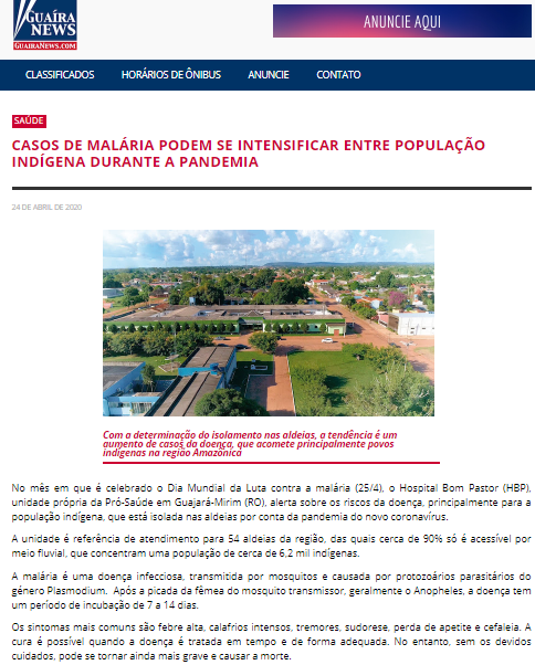 Guaíra News – Médica do Hospital Bom Pastor explica como casos de malária podem se intensificar entre população indígena durante a pandemia