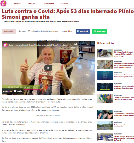 Guia Medianeira – Idoso recebe alta do Hospital Madre de Dio após 53 dias internado na UTI com covid-19