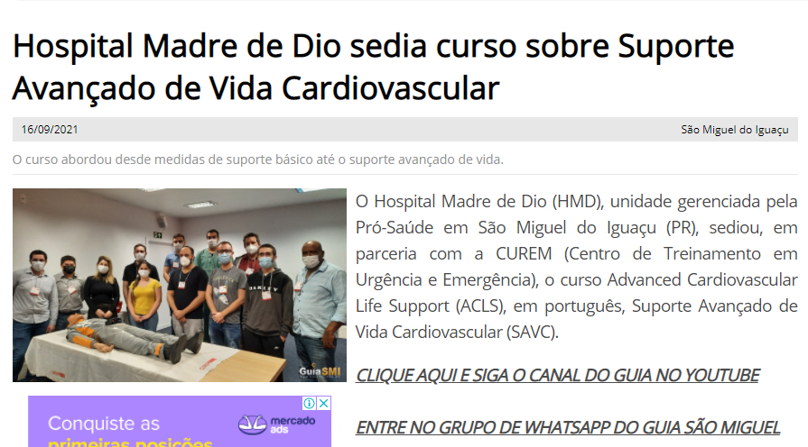 Guia Sim – Hospital Madre de Dio sedia curso sobre Suporte Avançado de Vida Cardiovascular