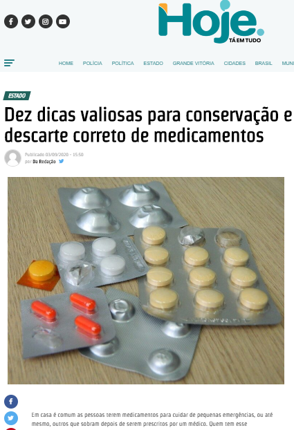 Hoje ES – Hospital Estadual de Urgência e Emergência orienta para o descarte correto de medicamentos