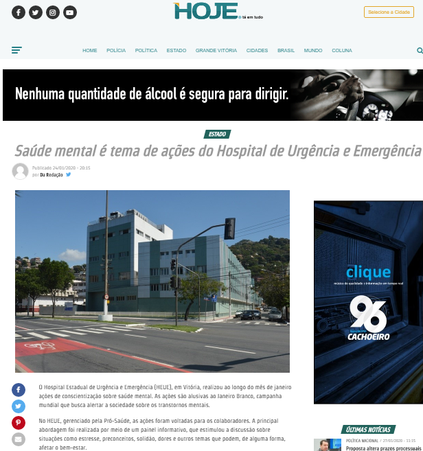 Hoje ES – Saúde mental é tema de ações do Hospital Estadual de Urgência e Emergência